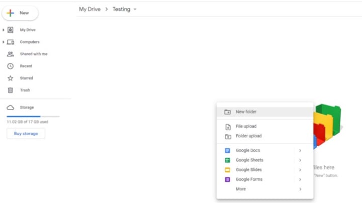 To create a new folder in Google Drive, click on the “New” button and select “Folder.” Give your folder a name and click “Create.”