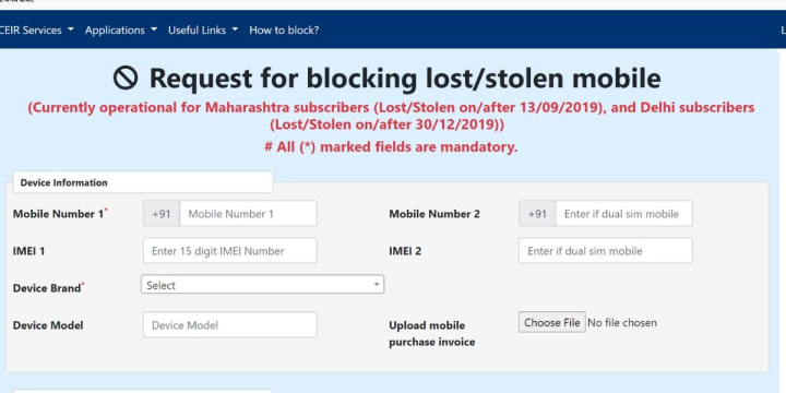 - Visit the portal here for blocking the IMEI and attach the required documents. You will need the copy of the police report, identity proof, purchase invoice, and other details