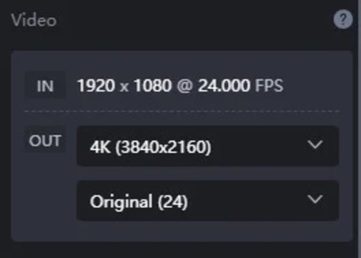 The second way is to click on the drop-down menu in Video-Out and select 4K, and below this, you can also select the frame rate you want to convert to. Once you select an upscaled resolution, the AI Enhancement feature will be enabled automatically.