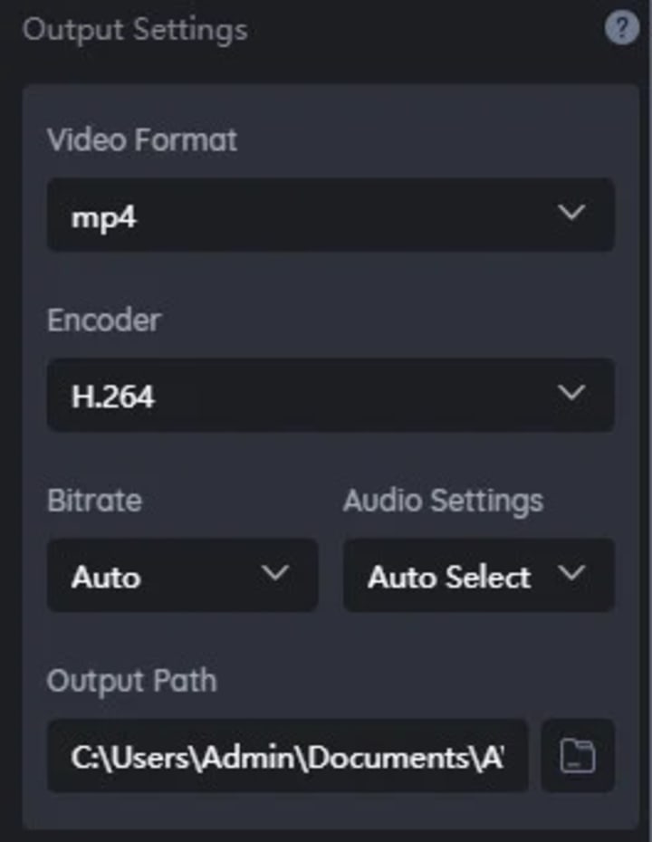 Output Settings: the section where you can set the output video format(MKV, MP4, AVI, MOV, WEBM), encoder, bitrate, and output path.