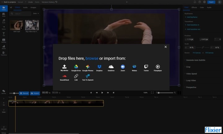 Flixier is an amazing online tool for enhancing the quality of MP4 videos. It offers features designed to improve the overall appearance of the videos. While it doesn't provide direct options for altering colors, it focuses on enhancing the visual appeal in other ways. Some of its key features include trimming videos, adding various transitions and motion effects, inserting text and captions, incorporating subtitles, using preset shapes, and applying audio effects. Please note while the tool can be accessed for free, the finished video will include a watermark.