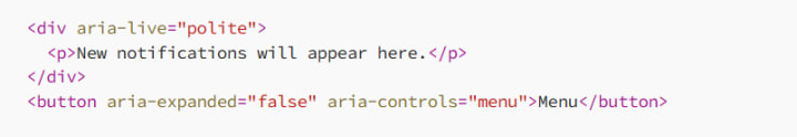 Example of using ARIA properties: