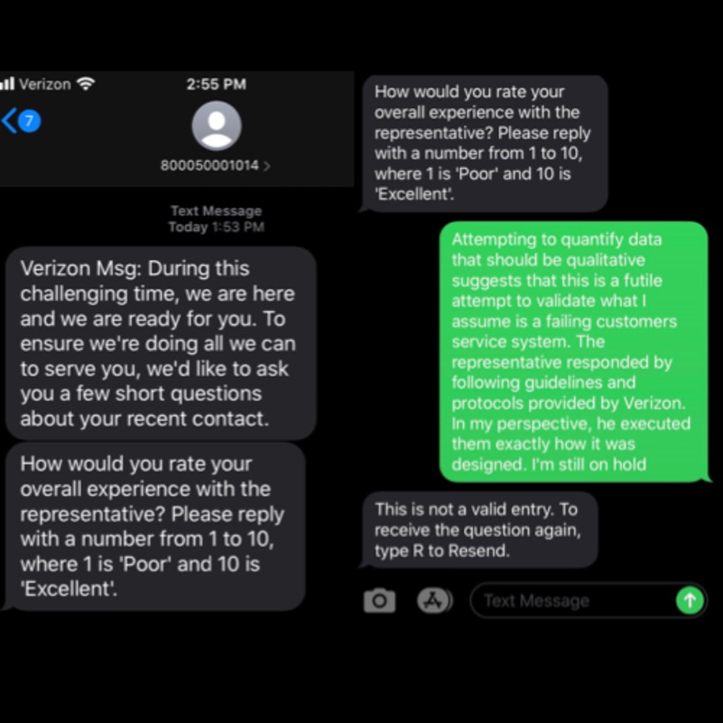 Unfortunately though, we do live in a world where people like this exist. I would recommend sticking to watching the Verizon commercials- in all honesty, they are quite entertaining AND you would save a lot of money this way. Also remember, it’s almost never the reps or the customer service people’s fault. They are just following protocols and guidelines. The people that can implement actual change are conveniently unreachable. I hope this helped. Have a wonderful day. And remember, if the Coronavirus can obey the 6 foot rule. So can you. Stay safe.