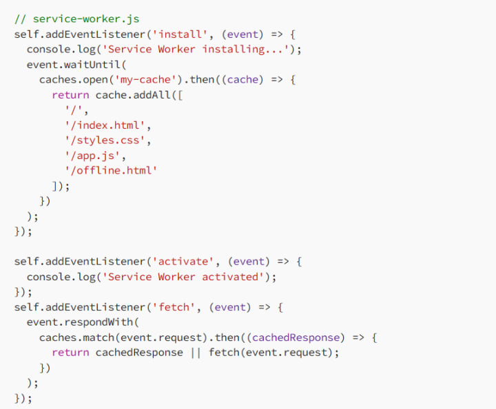 - Test in Real Conditions: Make sure to test your Service Worker implementation under real-world conditions, including network failures and slow network speeds, to ensure that your app provides a great offline experience.