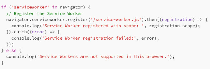 If the browser supports Service Workers, the script will attempt to register the Service Worker located at /service-worker.js.