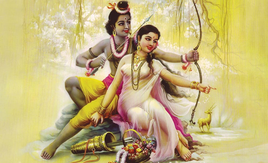 When Maa Sita and Lord Rama met for the first time, She was walking on Her terrace and He was walking below, they saw each other across the floors, and were in love at first sight. They were married through the process of Swayamwar (a tradition where the bride could choose her husband from a gathering of men who would display their skills thus proving their ability as husbands). There is an interesting story related to their wedding as well, which we shall narrate another time. After their wedding, Lord Rama was asked to leave His kingdom and stay in exile for fourteen years by His father. King Dasharath, Lord Rama’s father in the human realm was bound to a promise he had made to his second wife Kaikeyi and Lord Rama respected His father’s word.