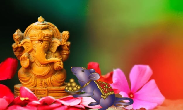The gods were terrified and had to hide in forests and mountains. The innocent people suffered from the demon’s atrocities. The gods pondered on what to do and how to end this torment. At that moment, Lord Surya himself appeared before them and said, “You must all worship Lord Mooshkavahan Mahodar. He is the only God who can free you from your troubles.”