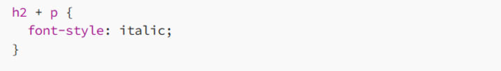 Here, the first p element that directly follows an h2 will be styled in italics. If there are any other paragraphs not immediately after an h2, they won’t be affected.
