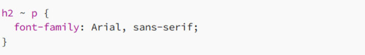 In this case, all p elements that follow an h2 tag in the same parent will get the Arial font family.