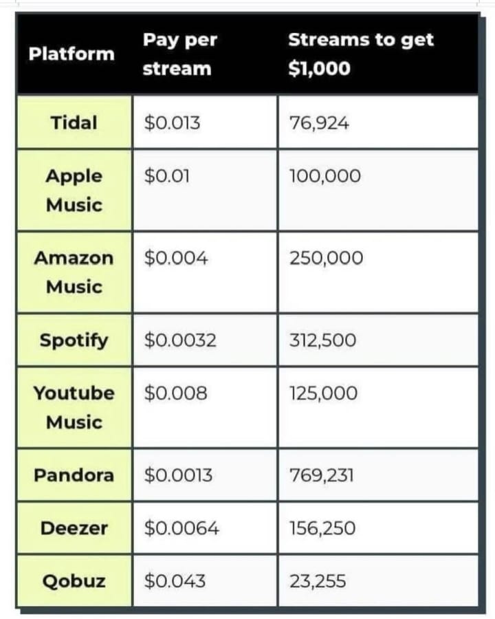 We (Paul and I) were talking the other day about how much artists get on streaming platforms. I didn't know it was so little! Thats awful. Thanks for clarifying!