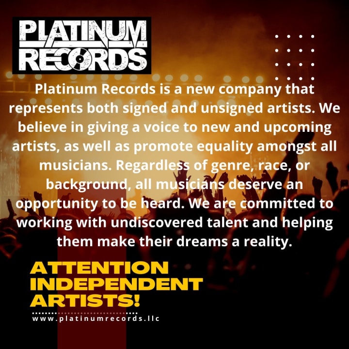 Platinum Records is the first-ever record label and distribution company in one. Allowing artists the opportunity to get a record deal or stay independent.