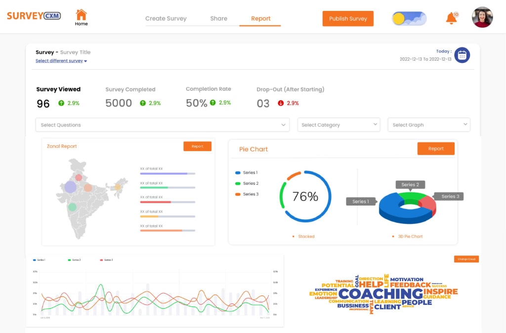To make the survey easier with excellent templates, tools, and other resources, Survey CXM is the right tool for understanding the complete picture of the brand. Our tool helps to capture customer feedback with multiple CX measurement metrics and leads to the development of KPIs. SurveyCXM gives statistical modeling inclusive of sales predictions, customer visits on the website, mode of payments, churn analysis, and many more.