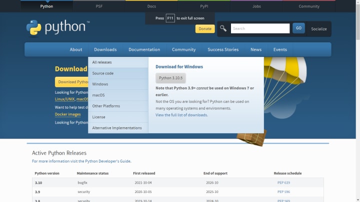 3. Download the Latest version of Python or you can check the old version of python also but one thing to be noted some function will not work properly if you installed older version of python.