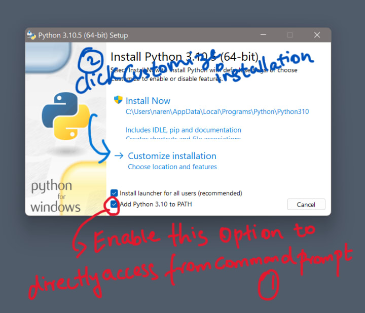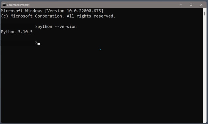 9. Open the command prompt and check Python is correctly installed using command prompt. Inside the command prompt type python --version to check. the installed version of python will be displayed.