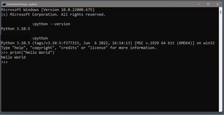 10. If you need Python Environment type python and enter. When you click Enter, its officially on python environment.