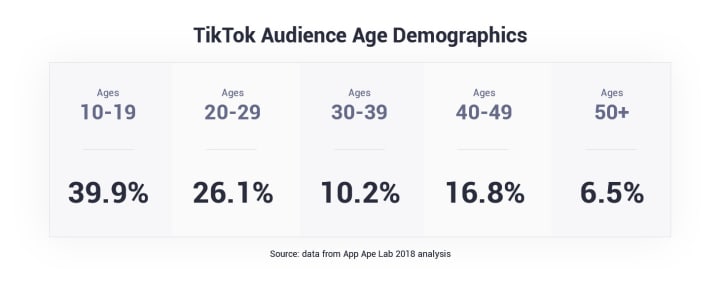 The baseline assumption in the media, however, is that it's the under 18-year-olds for whom both platforms compete. It's not easy to find accurate and TikTok-verified demographic data on the platform. Research of App Ape Lab 2018, a company offering data and analysis on mobile applications, found that 21.3 percent of TikTok's male users are under 20 years of age, and 18.6 percent of its female users are under 20.