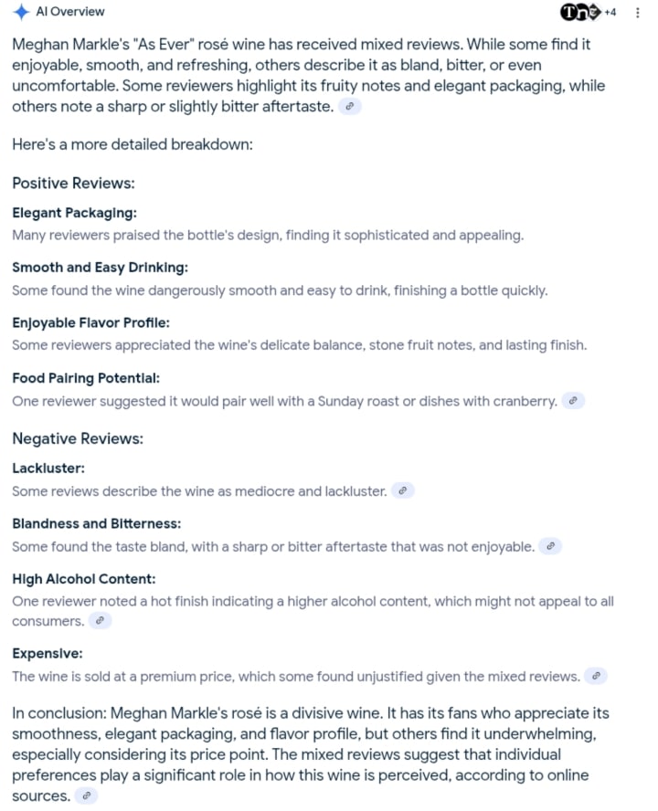 As the Duchess of Sussex Meghan Markle's As Ever startup company restock the Napa Valley Rosé on the female founder's birthday, what are the reviews? Including of course the opinion of AI.