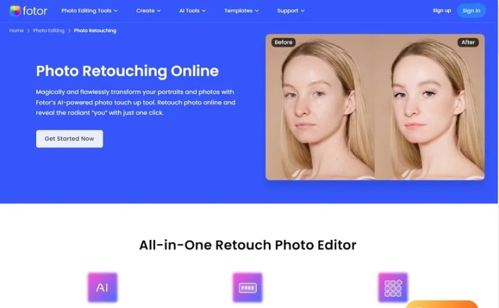 2. Fotor Photo Retouching Online