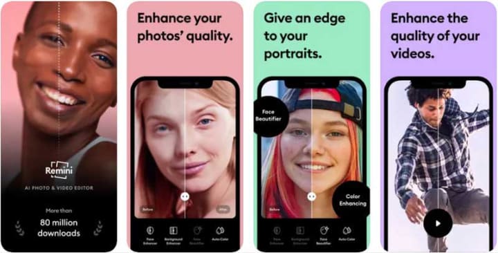 Remini is a mobile app powered by artificial intelligence (AI) that specializes in enhancing photos, especially older, blurry, or low-resolution ones. Its key features include sharpening blurry images, improving resolution, and enhancing overall clarity. The app also offers a specific function for enhancing facial details in portraits, as well as the option to add color to black-and-white photos. With regular updates introducing new features like video enhancement, Remini ensures users have access to the latest in photo editing technology.