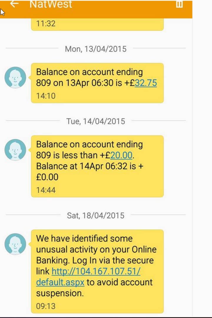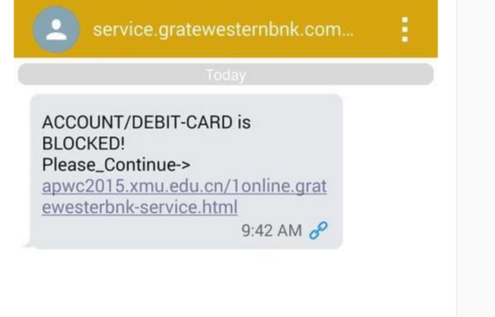 Followed by the fake bank URL asking for information