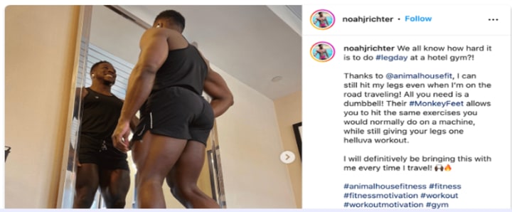 Noah J. Richter joined Animalhouse Fitness campaign on MonkeyFeet product, supporting athletes and health enthusiasts in achieving their goals. He promoted MonkeyFeet to his 66.4K followers. Over 100 products gifted to fitness influencers garnered millions of global views.