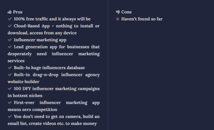 SociFluencer agency is – the most sophisticated all-in-one solution with proprietary technology that can identify businesses, now you will be able to look for influencers to help them, find the top influencers in any niche, and close them both with advanced email technology. With 100% automated software generates laser targeted leads that need unlimited traffic + finds influencers (with over 1m subscribers) to match their needs from the built-in database… and uses DFY high-converting campaigns, you can create massive agency profits in just 3 simple steps. More features can be found on the following part of my review.