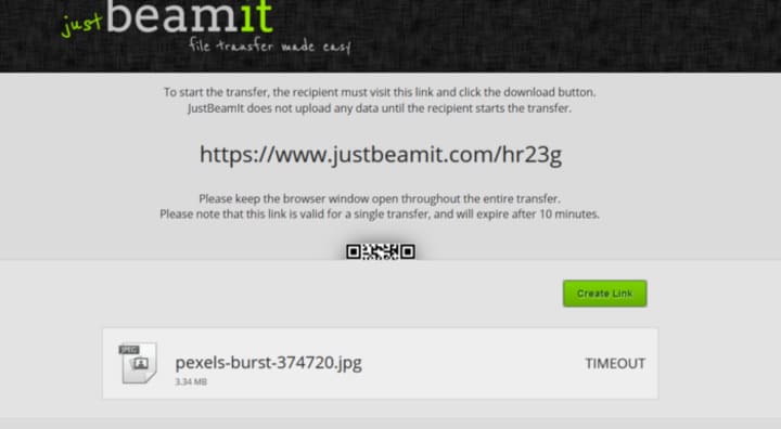 The link is valid for a single transfer and expires in 10 minutes. The sender must keep the tab open for the recipient to download the file. I created my own link as a demo you can either drag and drop or click on the parachute to select your file.