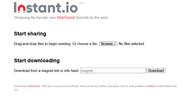 Anyone with the link can download the file.This basically turns your web browser into a torrent streaming client. Alike just beam it you must keep the tab or window open for others to download the file. Just select a file as shown below. You’ll get a link, from there you’re ready to share.