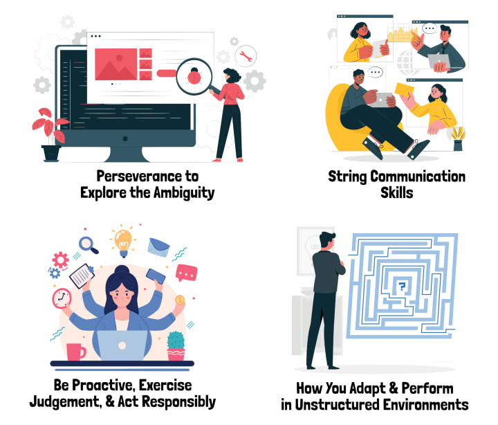 - Perseverance to explore the ambiguity and learn new things,