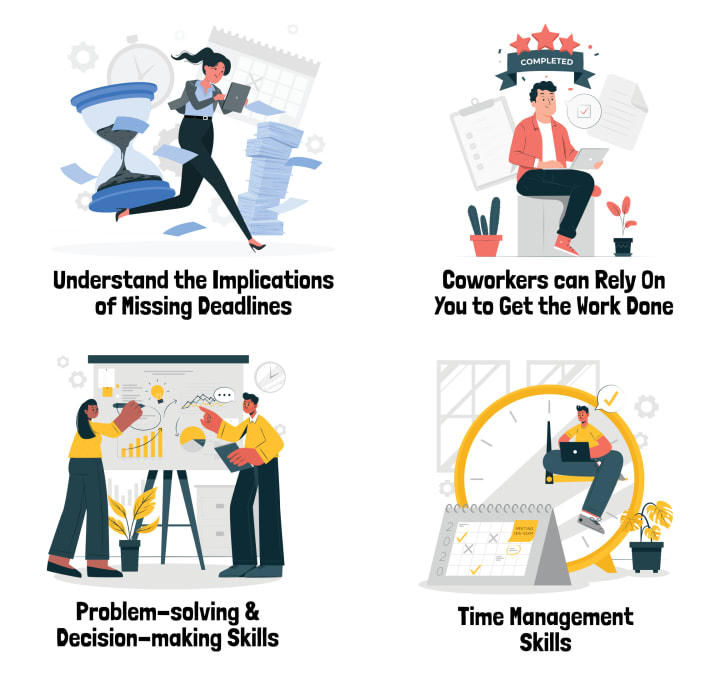 Employers want to know if you can handle competing priorities, shift gears when needed, and understand the implications of missing deadlines. They are looking to see if your coworkers can rely on you to get the work done.