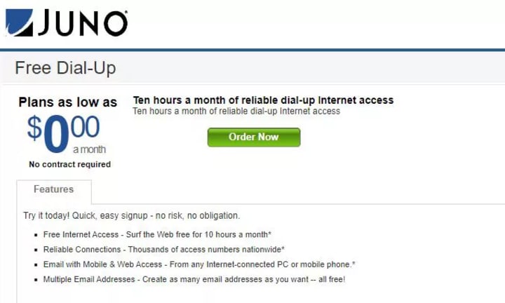 3. Free Dial-Up and Email: Juno