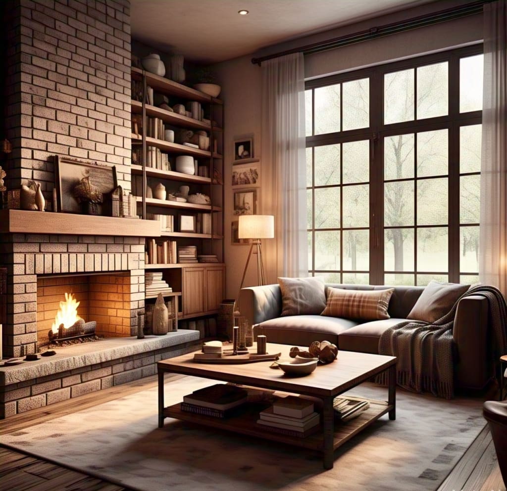 In front of the sofa, a low-slung coffee table made of reclaimed wood held a steaming cup of coffee, a vase of fresh flowers, and a few favorite books.