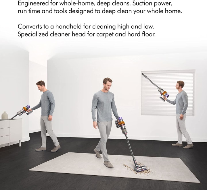 These features make the Dyson V15 Detect Absolute an advanced and versatile vacuum cleaner, offering powerful suction, intelligent cleaning modes, innovative technology, and convenient maintenance options to provide a thorough and efficient cleaning experience.