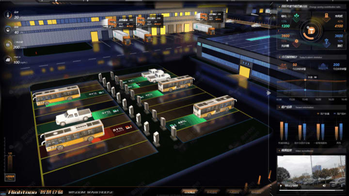 As a distributed photovoltaic project, the photovoltaic roofs is combined with charging piles, new energy vehicles and smart street lights. It uses photovoltaic modules installed on the roof to generate electricity. It is stored in the battery through a charging device or directly supplied to electric vehicles for charging. Photovoltaic roofs also provide power transmission for street lights, public facilities and other facilities in the park to achieve the effect of energy saving and emission reduction. Data was seamlessly integrated into 2D panels such as daily/cumulative electricity storage, power generation, discharge etc.