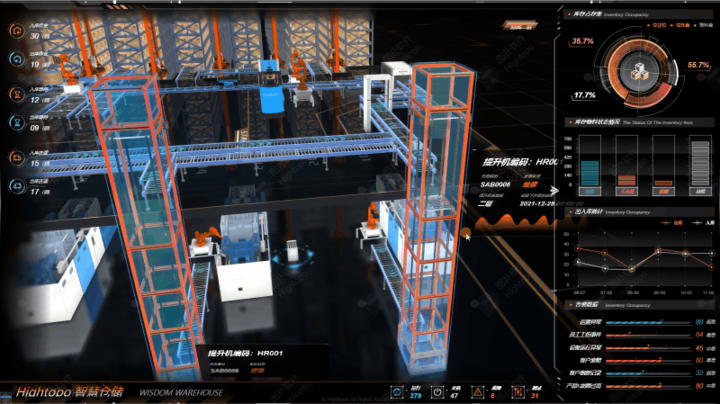 HT powerful rendering engine ensures smooth loading and the capability of handles up to 2 million faces 3d models. In this demo, we photorealistic modelling an AS/RS(Automated Storage and Retrieval System) warehouse. Each box inside the shelf is interactive and able to fetch information such as cargo location, real-time trajectory, equipment status, and inventory data.