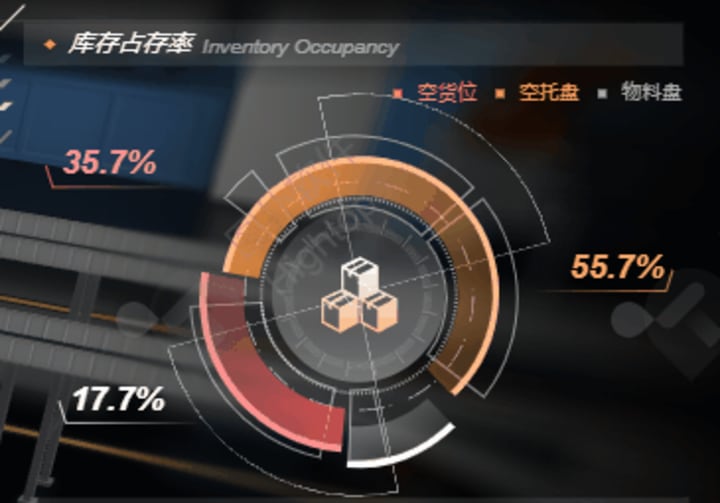 In addition, models such as warehouse shelf, stacker, conveyor, unstacking machine, AGVs (Autonomous Guided Vehicles), stackers, robotic arms and other equipment are all interactive and able to be triggered to show it’s operating status. When the system received an equipment alarm, the related equipment in the 3d scene will pop up with alert information to inform the operators.