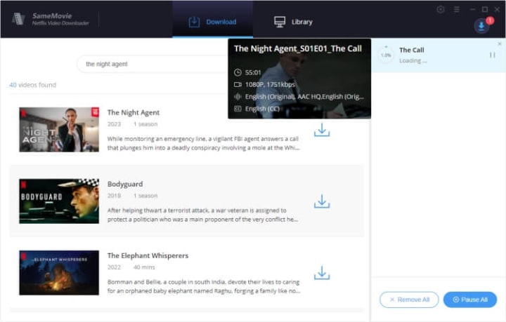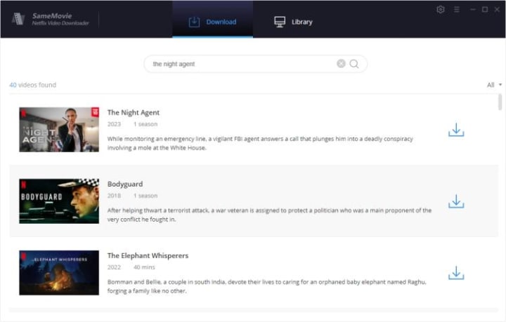 What’s the alternative to the Netflix app? SameMovie Netflix Video Downloader is the best tool for you if you want to save all your favorite Netflix series and movies permanently. By using this app, you can download The Night Agent in MP4/MKV files locally. Up to 1080p videos can be downloaded, and multilingual subtitles and audio tracks are also available to preserve. To get a better watching experience, just click the link below and have a try.