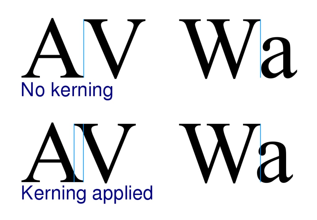 So in such cases kerning helps you in manually adjusting the space of alphabets that requires too little or too much space. Without kerning, the alignment text and the spatial relationship would be a complete mess.