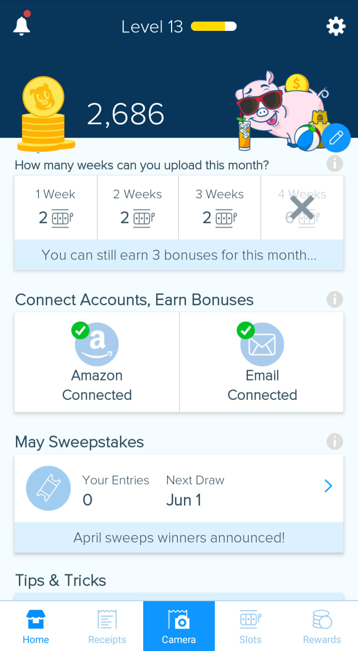 There are several versions of this concept but ReceiptHog is the best, easiest to use, in my opinion. While Ibotta only pays for certain products and ShopKick requires a lot more active participation of scanning items in the store, ReceiptHog offers some kind of reward for nearly every receipt scanned. Some receipts earn coins which can be used toward Amazon, Visa, or PayPal payments, others earn pulls on the slot machine which can lead to more coins, and others still become instant entries in a monthly sweepstakes. All you need is a clear, itemized receipt that shows each item purchased, time and date of purchase, and address of where the purchase was made. Receipts need to be entered within a week of purchase and entering at least one receipt per week will earn a monthly bonus. And each receipt earns points toward levels, each level offering more earnings.