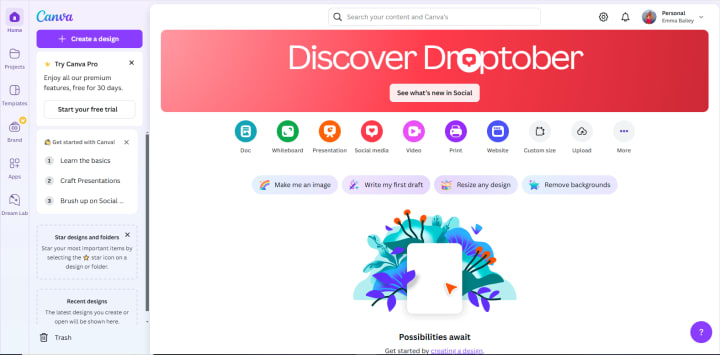 Whether on websites, social media, or email marketing, visual material is crucial for drawing attention. Anyone without a background in design can produce great graphics with Canva's user-friendly and adaptable design tool.