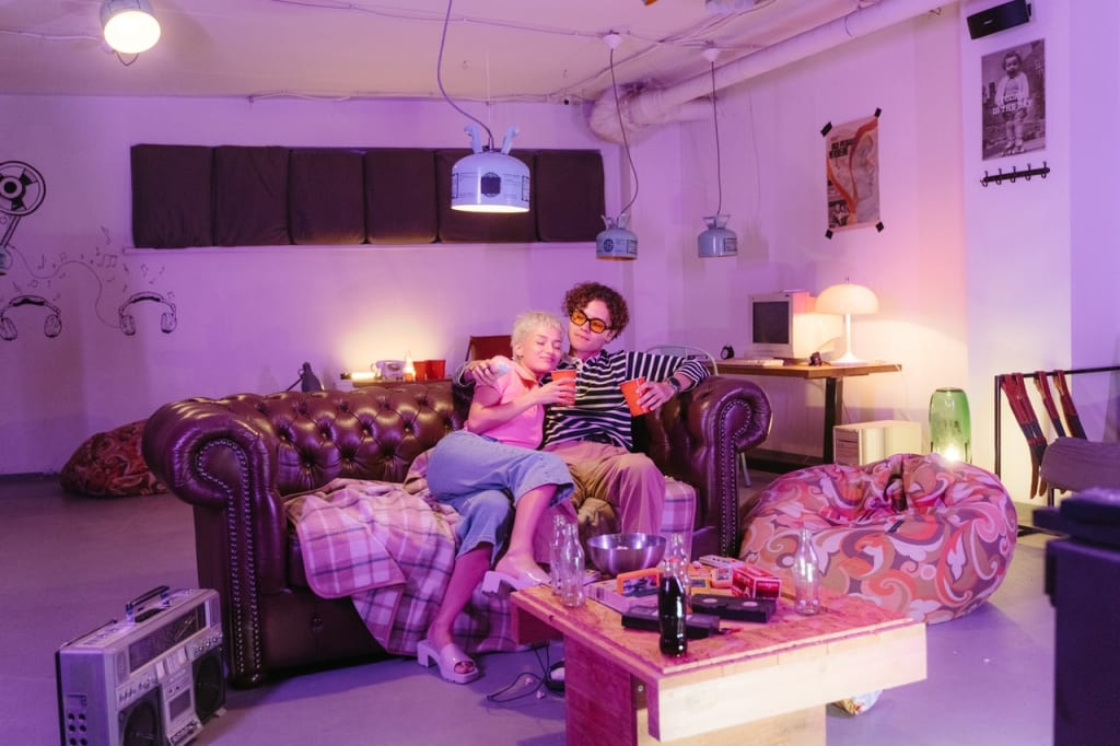 The fabric covering is vinyl, which resists most damage from spills or pets. Its speakers are configured for surround sound, giving you more immersive audio than you’d get from your TV or computer alone.