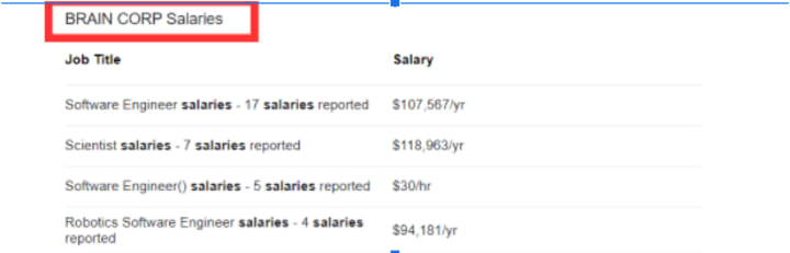More than that, they are still searching for opportunities to keep ahead of the technological change, such as self-driving cars and intelligent navigation systems. They even have excellent PTO and catered lunches to staff, among other wonderful incentives. The following are the average salaries of employees in the Brain Crop.
