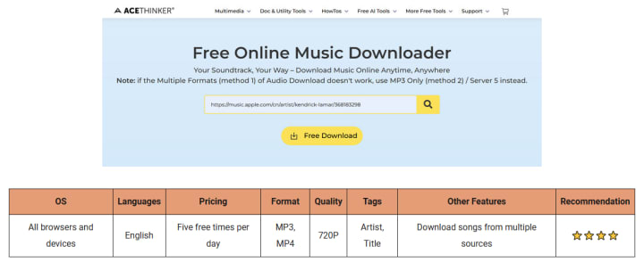 5. ACETHINKER Free Online Music Downloader
