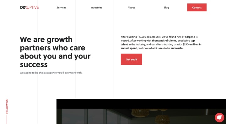 Disruptive Advertising is a digital advertising agency based in Utah, USA, in the GMT-6 time zone. According to their website, they “aspire to be the last agency you’ll ever work with,” showing that they mean business and want to provide you with the results to prove it.