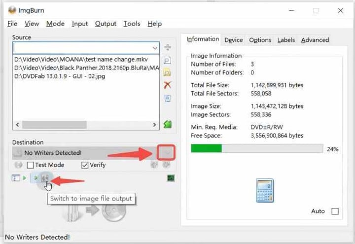 ImgBurn is a free MP4 to DVD converter for Windows. Since its release in 2005, it has become a popular choice for users seeking a straightforward tool to burn MP4 to DVDs and even Blu-ray discs. Despite its discontinuation in 2013, ImgBurn remains a reliable option for many users. It is designed to streamline the process of creating DVDs from video content, including homemade movies. You can use it to burn one or multiple MP4 videos to a DVD, directly burn them onto either DVD5 or DVD9 discs. If you prefer creating a hard disk copy, you can also save the project as an ISO image file.