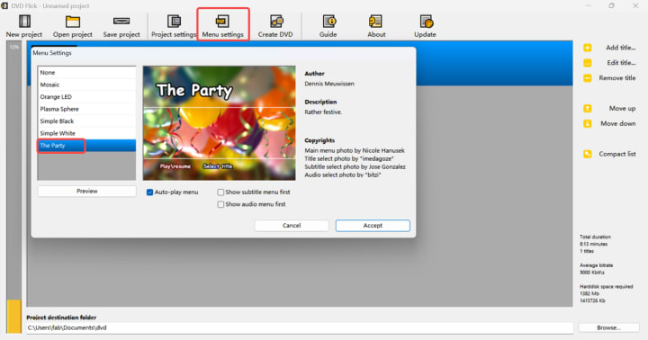 DVD Flick is a user-friendly MP4 to DVD converter that is also completely free and open-source. It allows you to effortlessly convert and burn popular video formats like MP4 to DVD format, saving the final output as an ISO Image file on your computer or directly burning your videos onto blank DVDs. With DVD Flick, you have the ability to seamlessly adjust the order of titles on your DVD and choose between single-layer and double-layer disc formats to suit your specific needs.