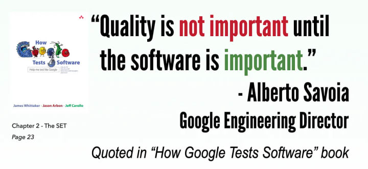 “In my experience, great developers do not always make great testers, but great testers (who also have strong design skills) can make great developers. It’s a mindset and a passion. … They are gold”. - Google VP Patrick Copeland, in an interview (2010)