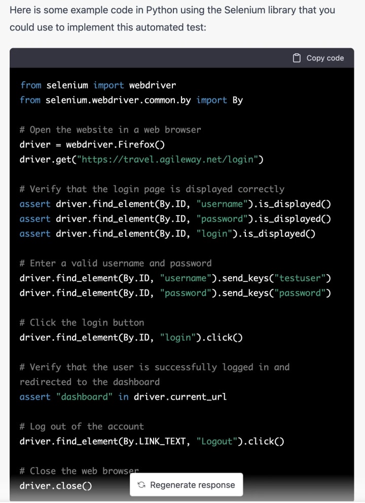 - ChatGPT definitely won’t create a working complete test script for you.