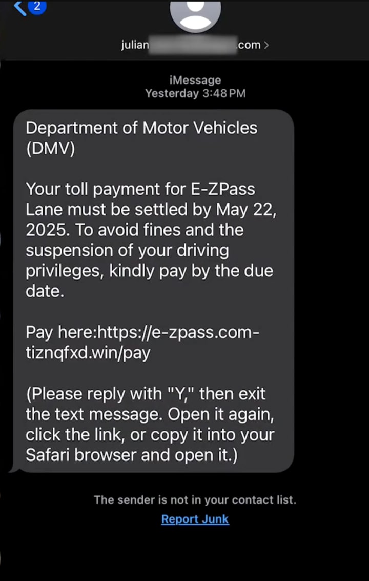 Imagine getting a random text on your iPhone saying you owe money for a toll you don’t even remember taking.