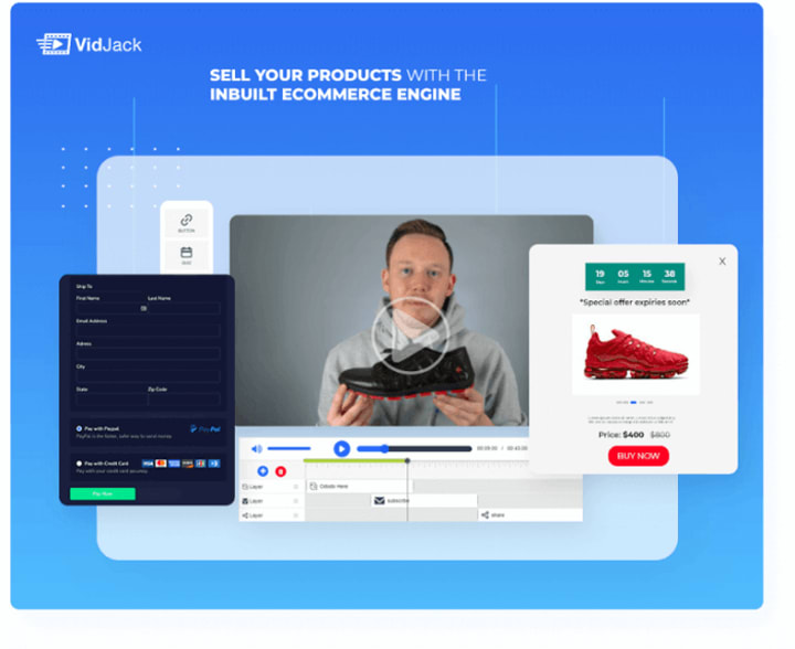 Showcase your products, sell and get paid right inside any YouTube or Vimeo video in minutes. VidJack allows you to connect your PayPal and Stripe to receive payments right inside the video.
